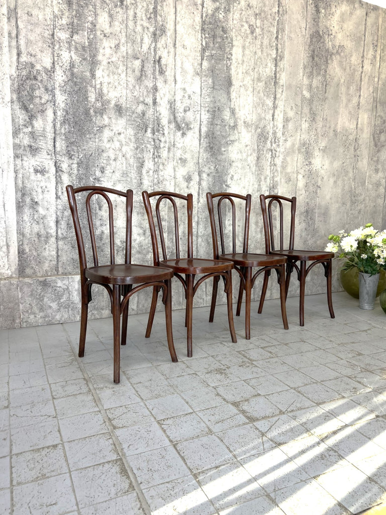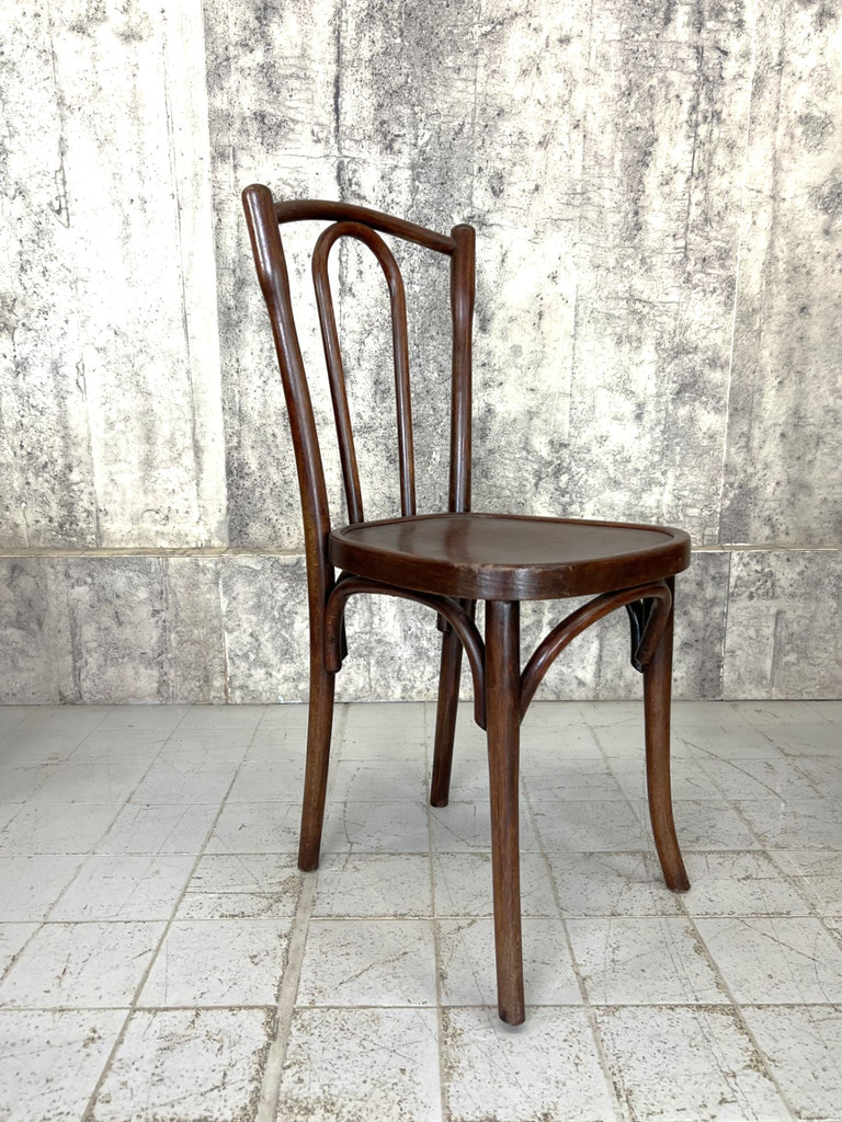 A classic and lovely set of bistro chairs. In good working condition and bumps and bruises aligned with age and use. Simple classic bentwood design.
