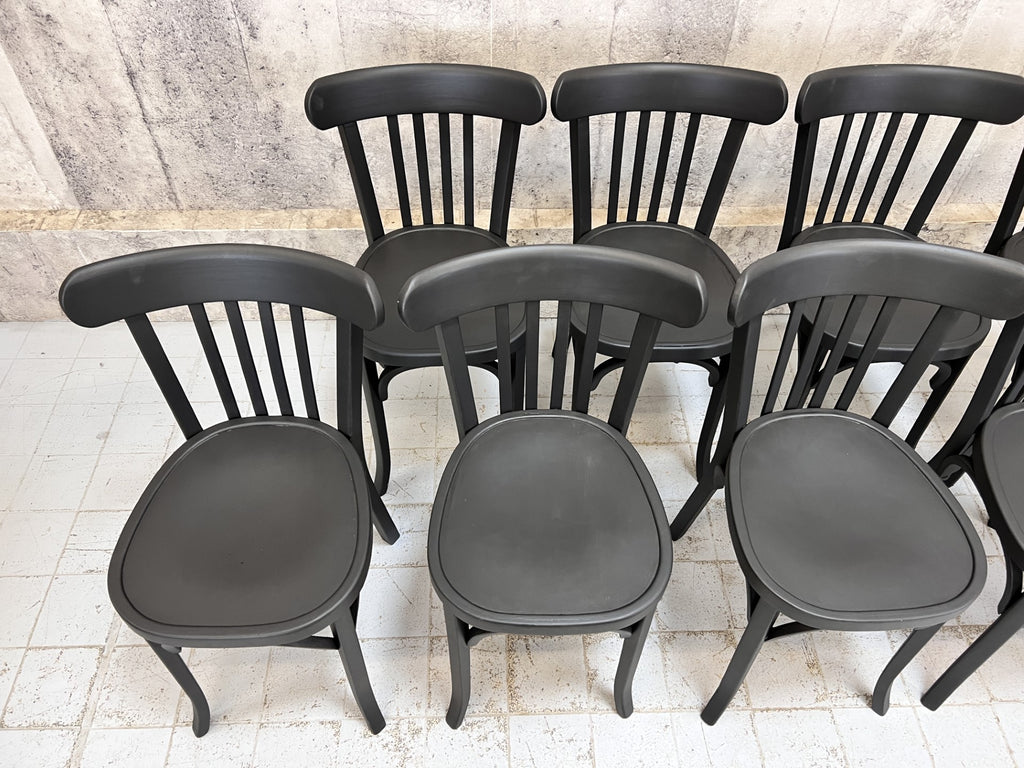 Set of Nine Black Wooden Bentwood Bistro Chairs