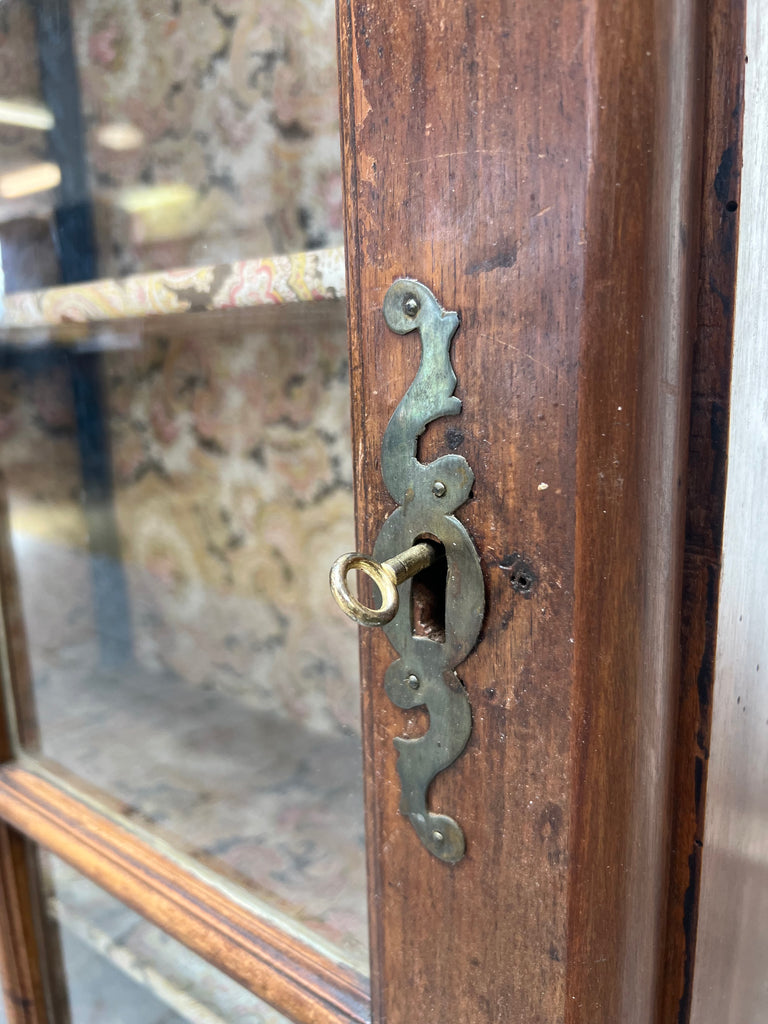 The original key was long lost and both the key and the lock have been replaced with more recent versions. You can see that the wood had worm back in the day, but that was some time ago, the holes are no longer inhabited and we have treated to give it a double protection, as you can see from the photograph but nothing that effects the function and character of this piece.