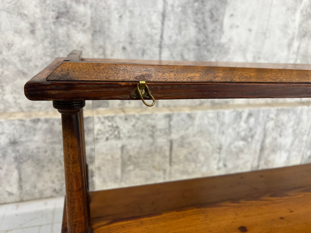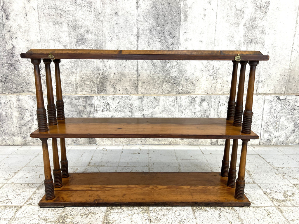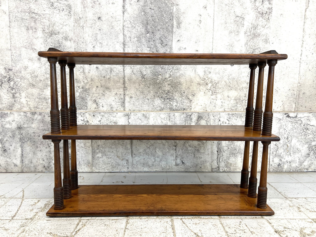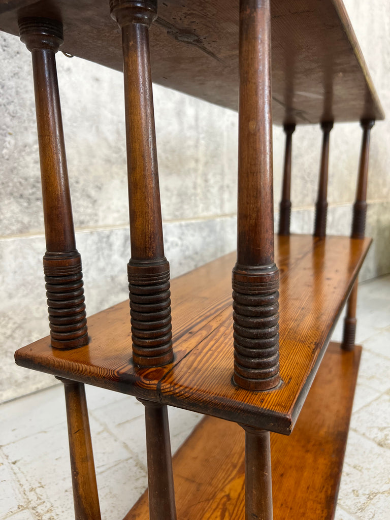A delicate set of wooden shelves perfect as a table top shelving system, but are also a lovely height for a child's bedroom or a bathroom.  In good condition, ready to use as they are.