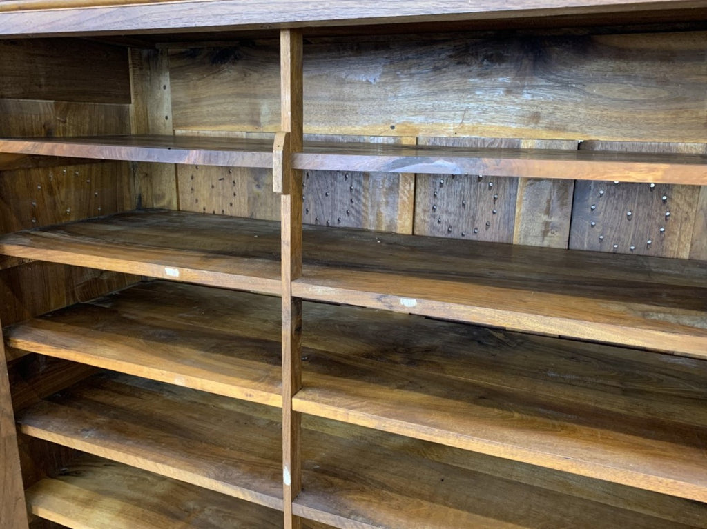 This is a quite unique cupboard. Made from solid walnut wood, with seven shelves and interestingly there are multiple aeration holes in a uniform circular pattern, on the sides and back. I can only imagine this was designed to store food, but it would also work perfectly for storing linen, clothes, toys, paperwork etc.