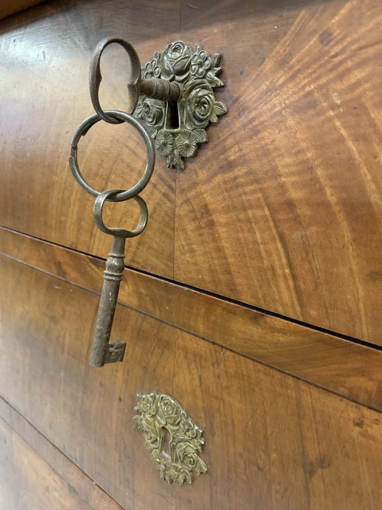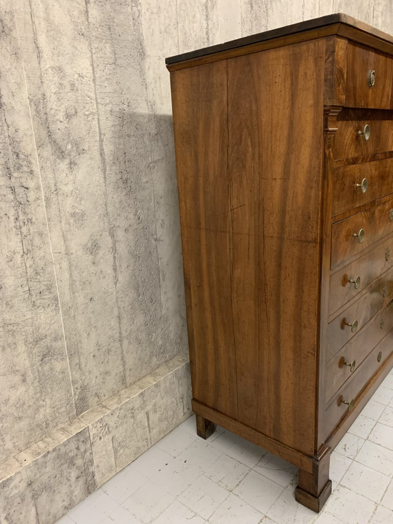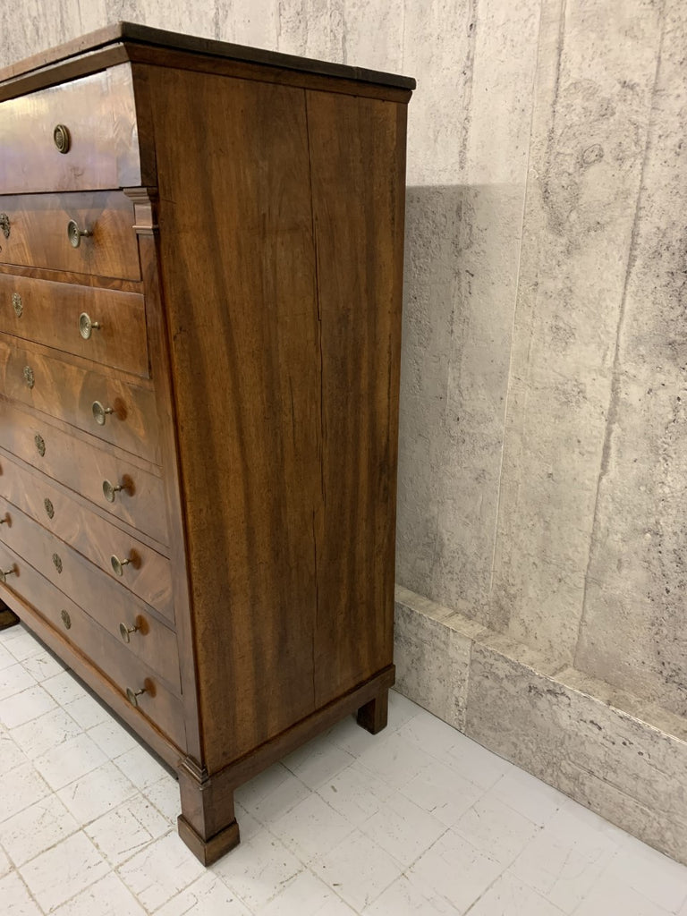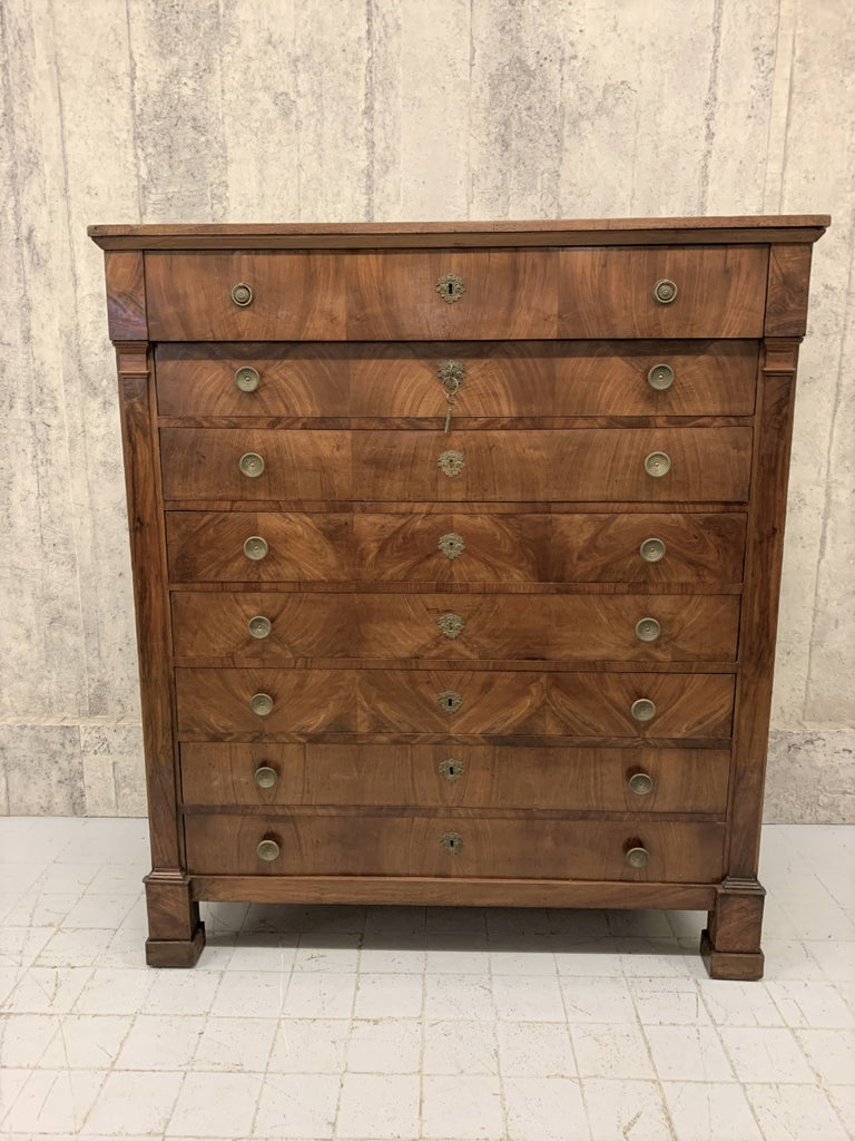 This is a one of a kind, difficult to find, huge chest of drawer. From France, we found this piece in a tailor's shop, where it would have been used for storage and decorative purposes, but originally it would have held clothes or general storage in the home of a family of great substance. Probably located on the wall between two windows, this piece would have made a statement in the room.