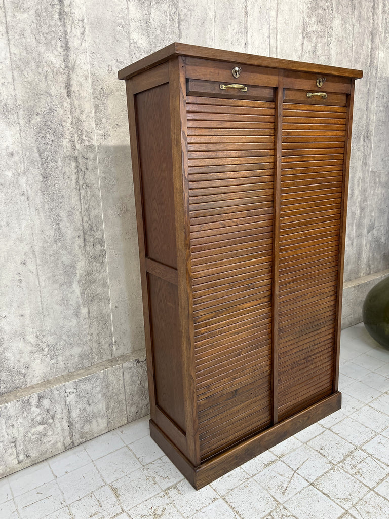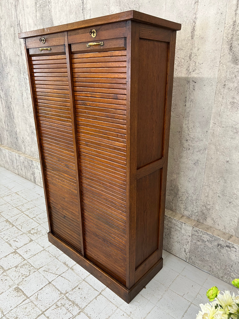 1920's Solid Oak Double Tambour Filing Cabinet