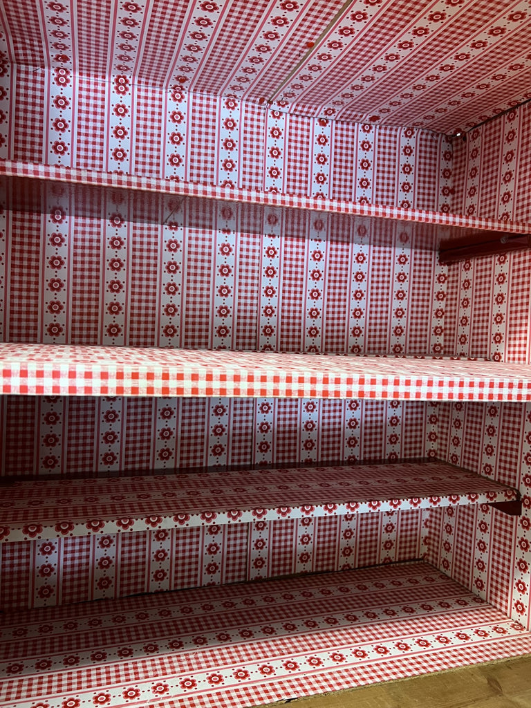 Dimensions: Overall measurements are 106cm wide x 59cm deep x 214cm high. Top cupboard measures internally 80cm wide x 48cm deep x 20cm shelf heights. The bottom cupboard measures internally 86cm wide x 48cm deep x 40cm shelf height. The drawer measures 66cm wide x 48cm deep x 9cm high