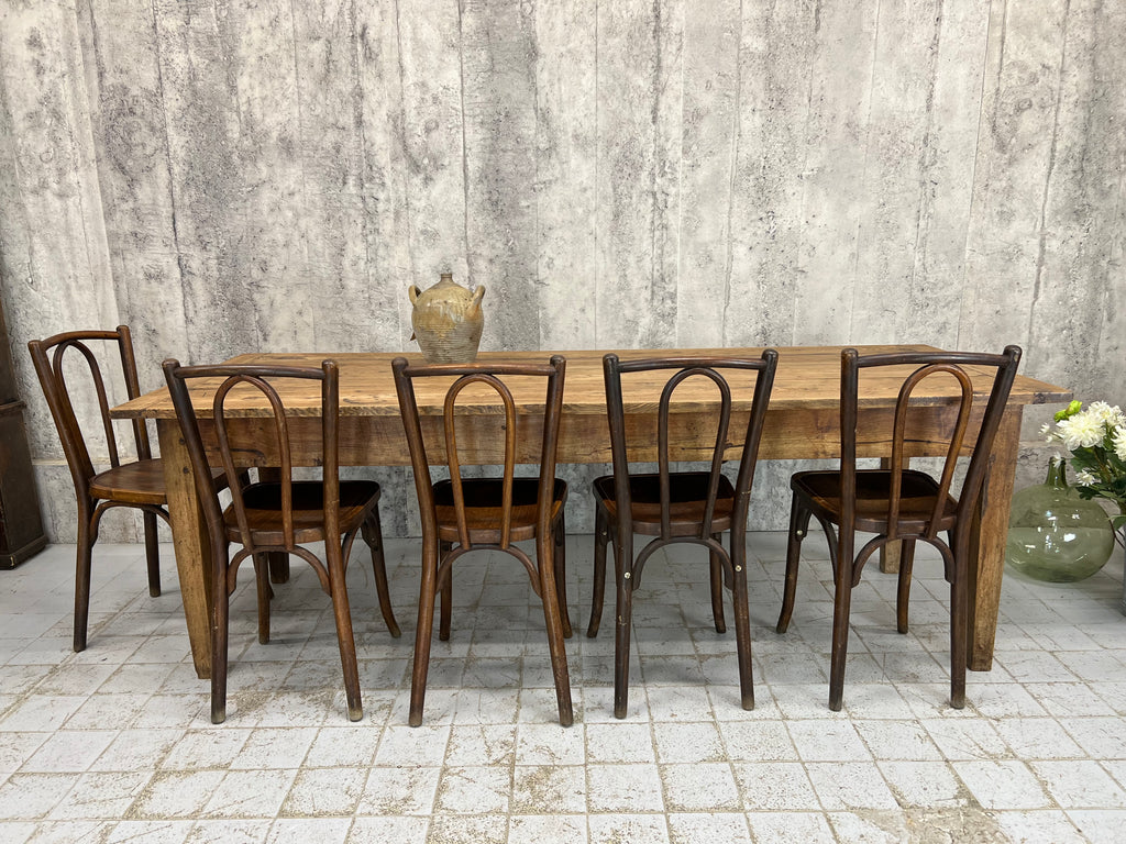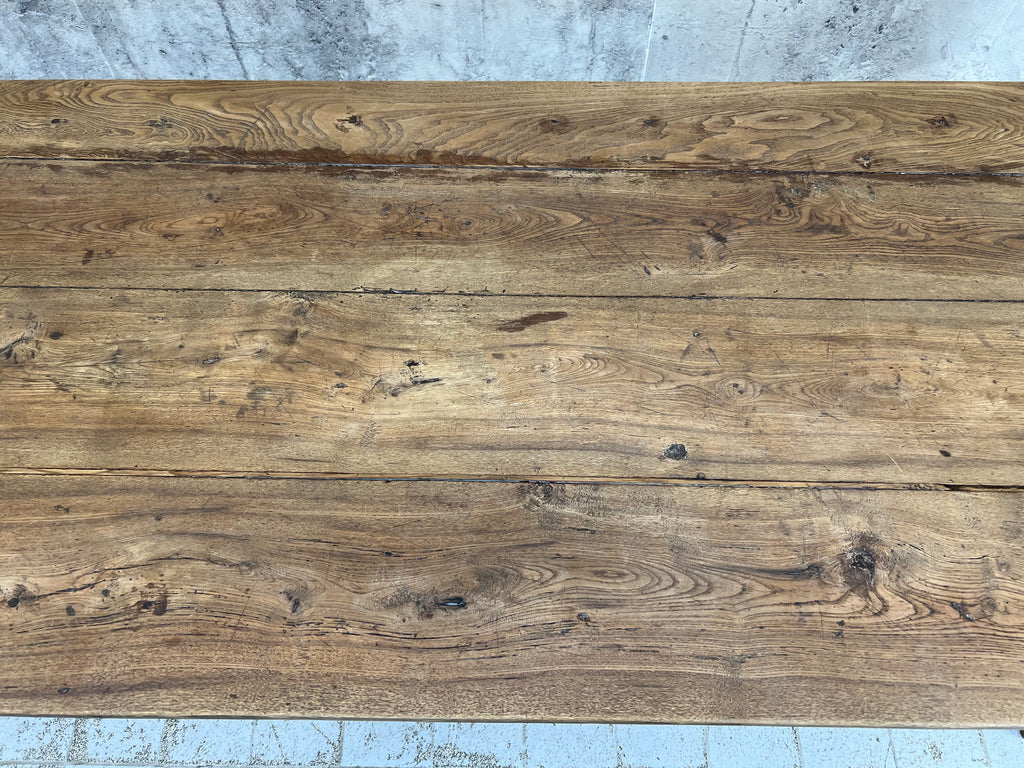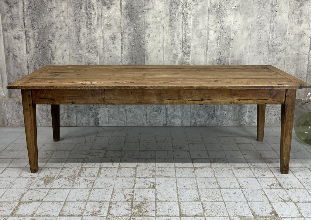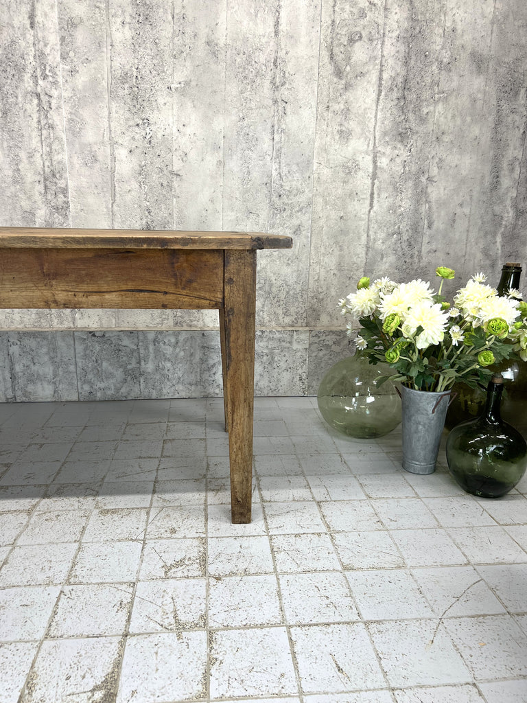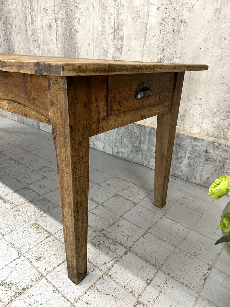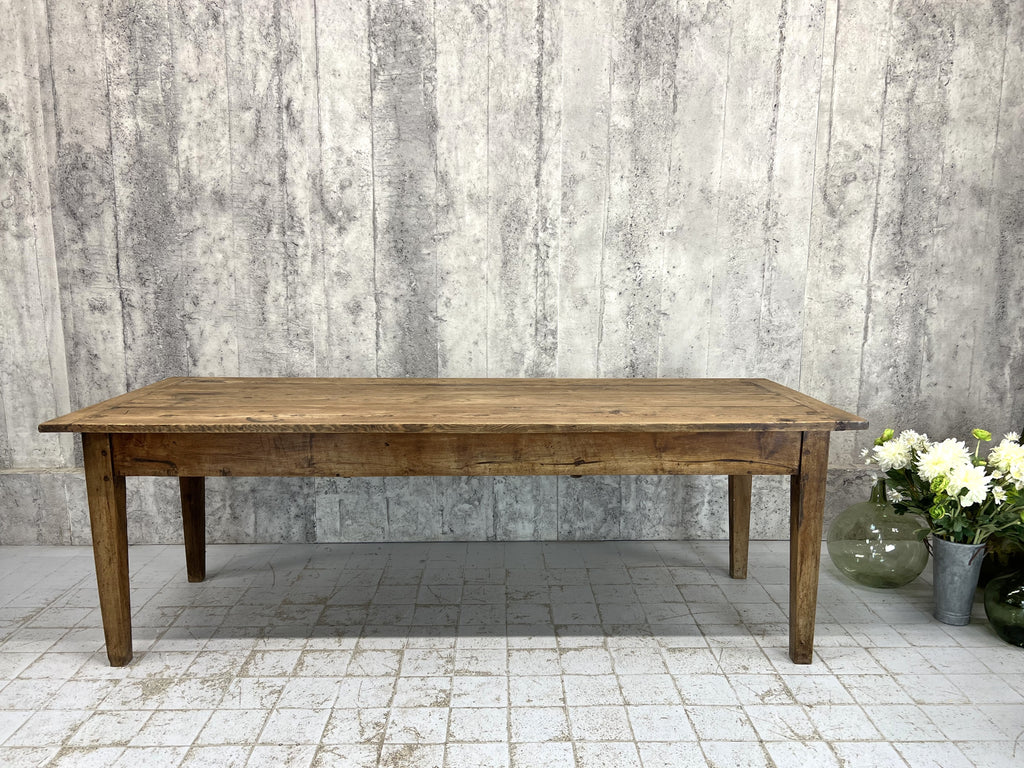 This table is absolutely beautiful. A rustic wooden example of this classic table style with a beautiful patina and markings. There are two useful drawers in the side of the table too. The previous owner had blocks underneath the legs which if you would raise the table slightly, we have these available. Will easily sit upto 10.. depending on your chair size.