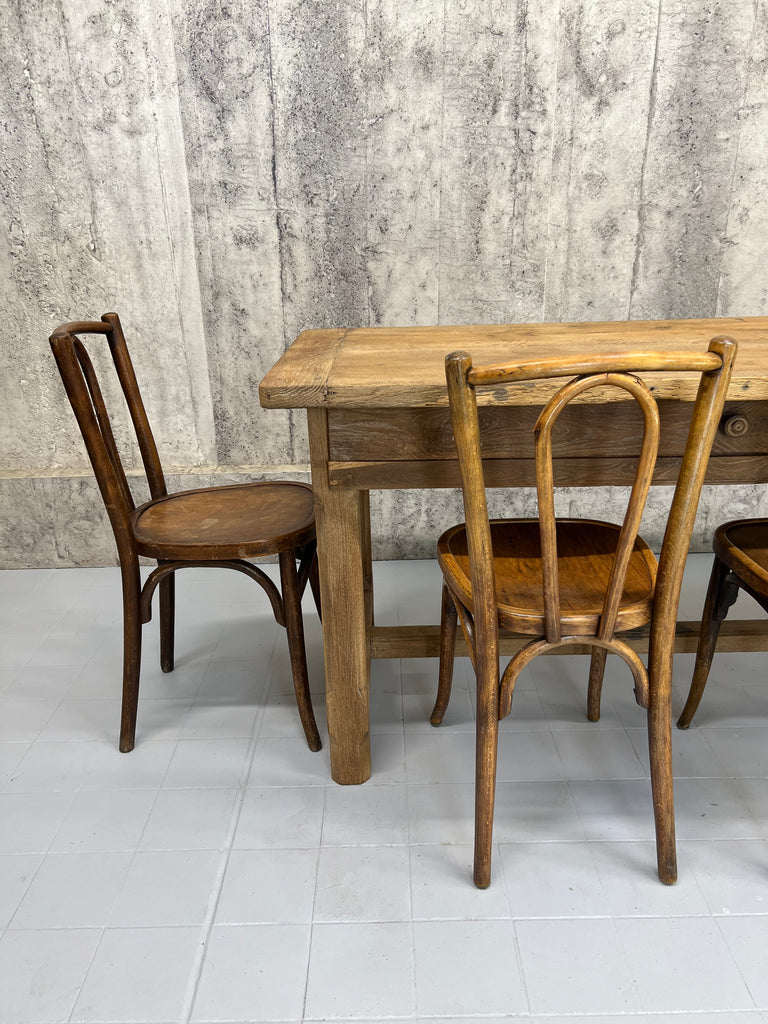 A dining table typical of the famous wine region of France, Burgundy.  The sliding doors underneath the table top open up onto a compartment designed for storing baguettes between meals.  Only in France.  A detail we absolutely love!