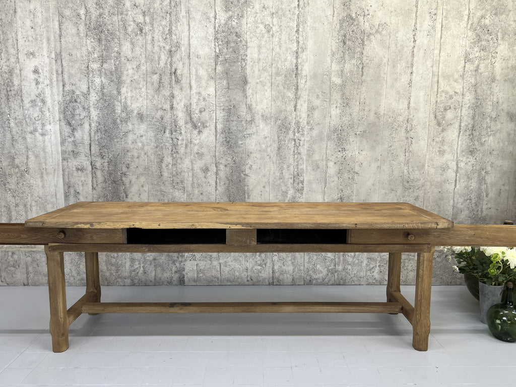 232cm French Burgandy Region Refectory Farmhouse Dining Table (with 2 Sliding Door Baguette Compartment)