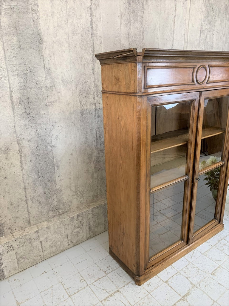 French Walnut Wood Glass Front Bookcase Display Cabinet Dresser Top