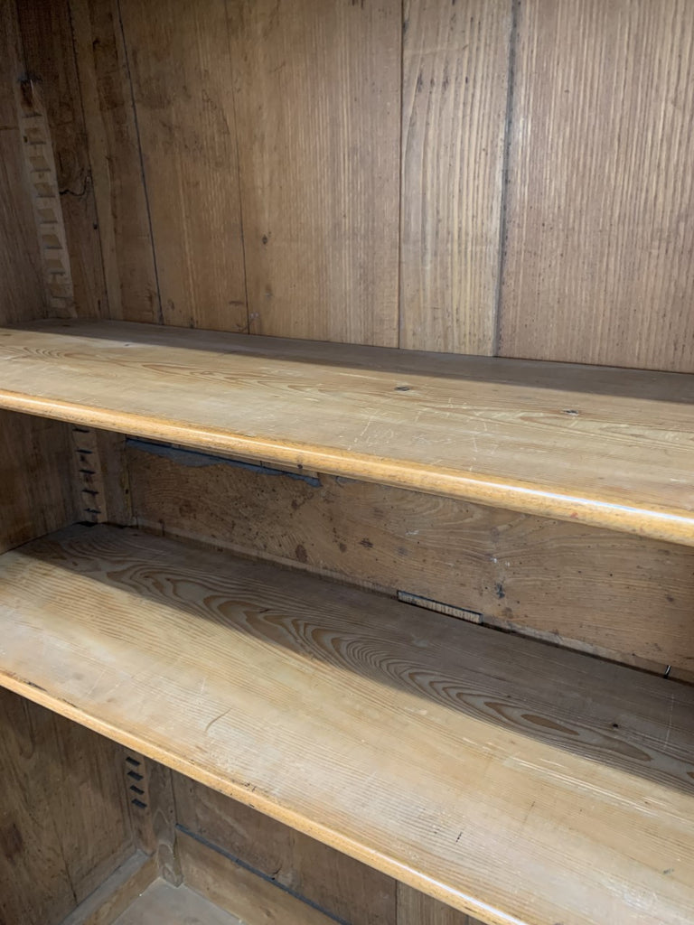 The wood is in good condition and the doors open cleanly. There are two shelves currently, but more could be added to increase the storage should you wish to. The door furniture is original. A fabulous piece, ready to use as it is.
