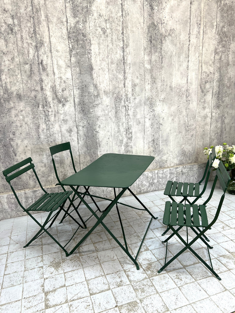 Green Metal Folding Garden Table and Set of 4 Folding Chairs