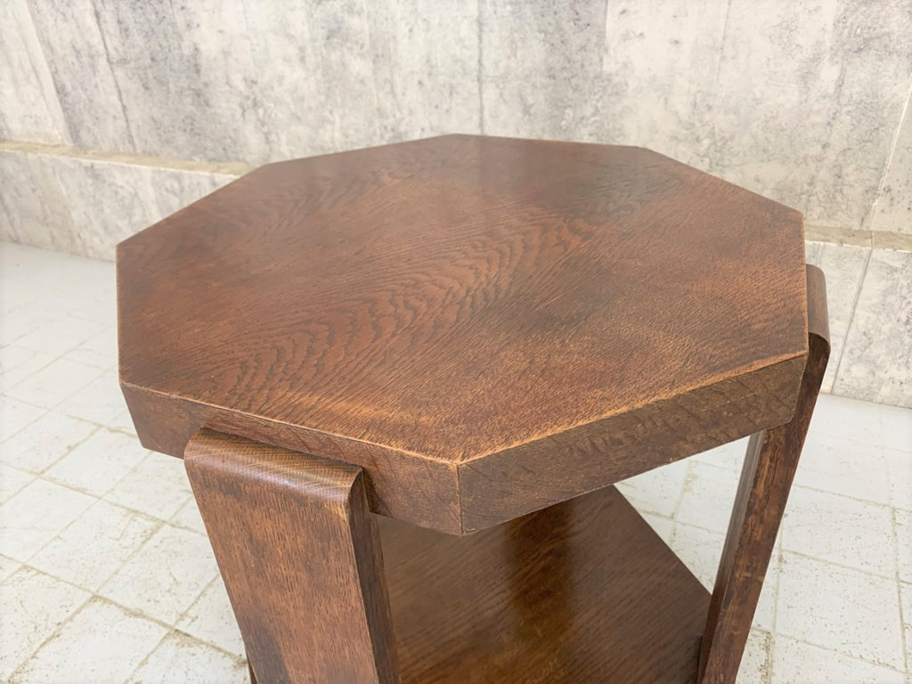 An interesting variation to the usual hexagonal Art Deco Gueridon. An interesting and characterful piece for your scheme which looks wonderful in a neutral scheme or with lots of textures. This is a mid century veneer version with a very beautiful table top design. In good condition throughout.