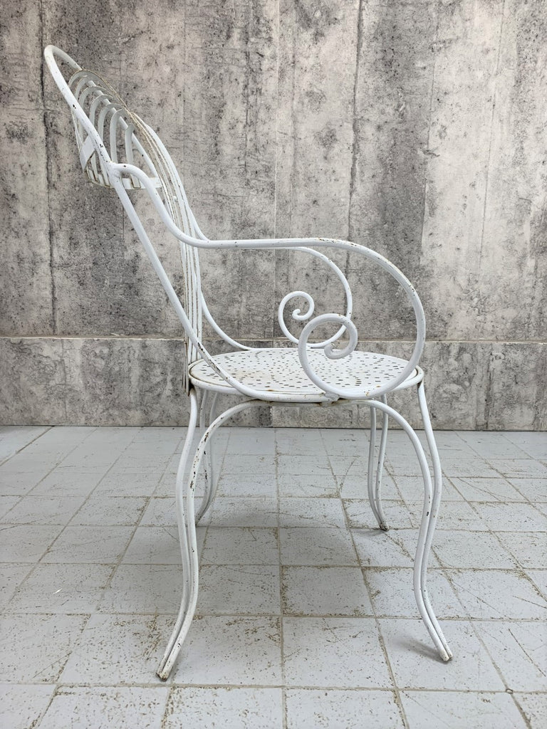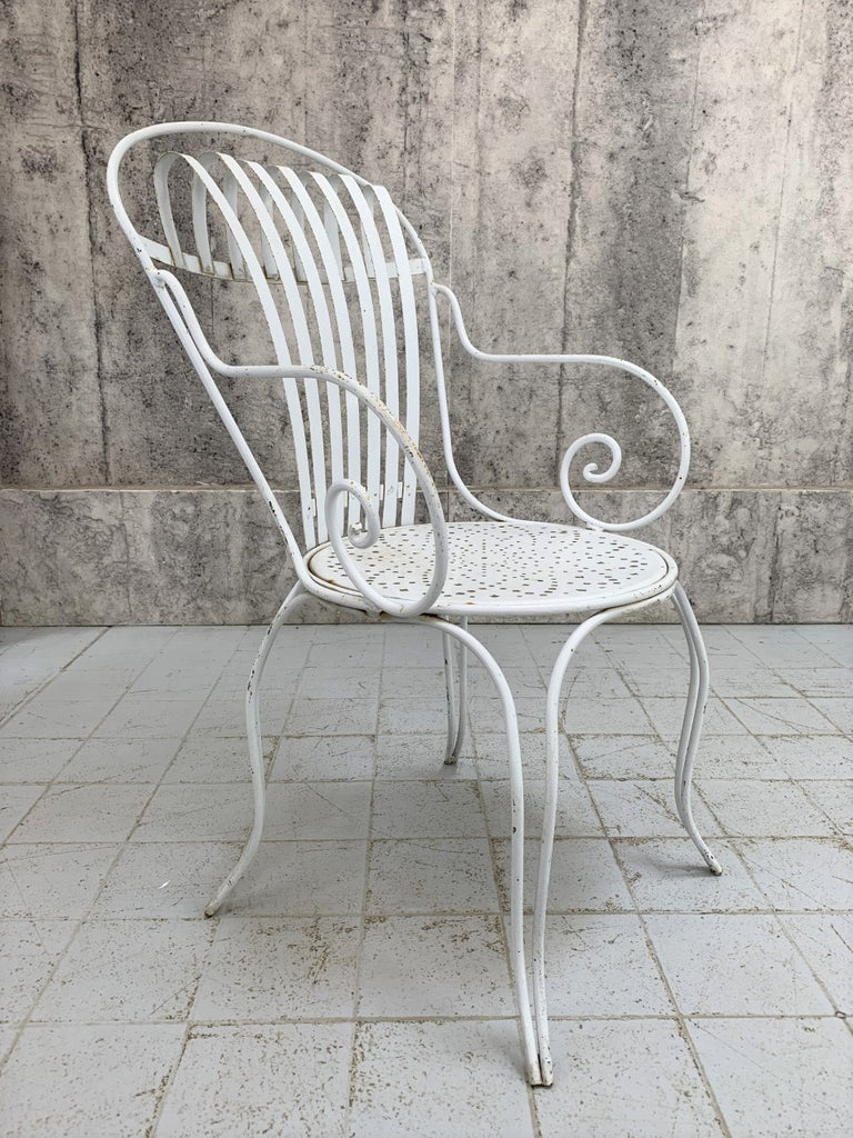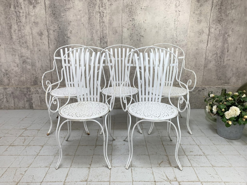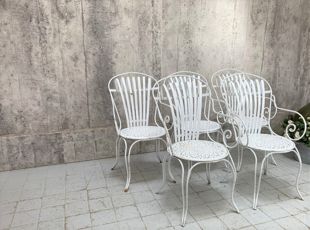 A really fabulous set of five matching garden chairs, with this absolutely fabulous back detail. Due to the shape of the metal backs, they act in a spring like fashion so are immensely comfortable and quite unique. The paint is original and as you would expect a little marked in places. These are a beautiful garden seating. Ready to use as they are